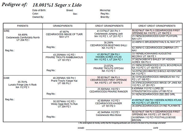 All of our litters meet the standards of the North American Pudelpointer Breeders Alliance, a group whose sole purpose is to protect and improve the performance standards this breed has established. Our puppies are registered with the North American Versatile Hunting Dog Association and are guaranteed to be free of genetic defects for one year. We do not require a buyer's contract. What we do require are honest sportsmen, and women, who are willing to give our puppies the hunting homes which they deserve.